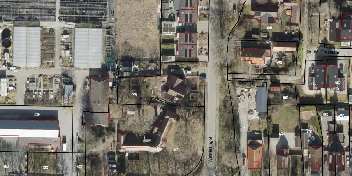 Het perceel waarop Westersingel 96 staat heeft een oppervlakte van 1010 m². Dit is een zeer groot perceel. De perceeloppervlakte wordt geregistreerd door het Kadaster. Gedetailleerde informatie over de maten van dit perceel kunt u vinden in het rapport Kadastrale kaart met maatvoering van Westersingel 96.