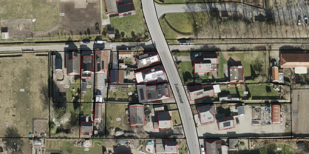 Het perceel waarop Zuiderstraat 21 staat heeft een oppervlakte van 375 m². Dit is een groot perceel. De perceeloppervlakte wordt geregistreerd door het Kadaster. Gedetailleerde informatie over de maten van dit perceel kunt u vinden in het rapport Kadastrale kaart met maatvoering van Zuiderstraat 21.