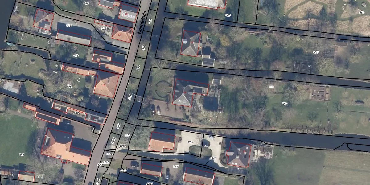 Het perceel waarop Noordeinde 14 staat heeft een oppervlakte van 3965 m². Dit is een zeer groot perceel. De perceeloppervlakte wordt geregistreerd door het Kadaster. Gedetailleerde informatie over de maten van dit perceel kunt u vinden in het rapport Kadastrale kaart met maatvoering van Noordeinde 14.