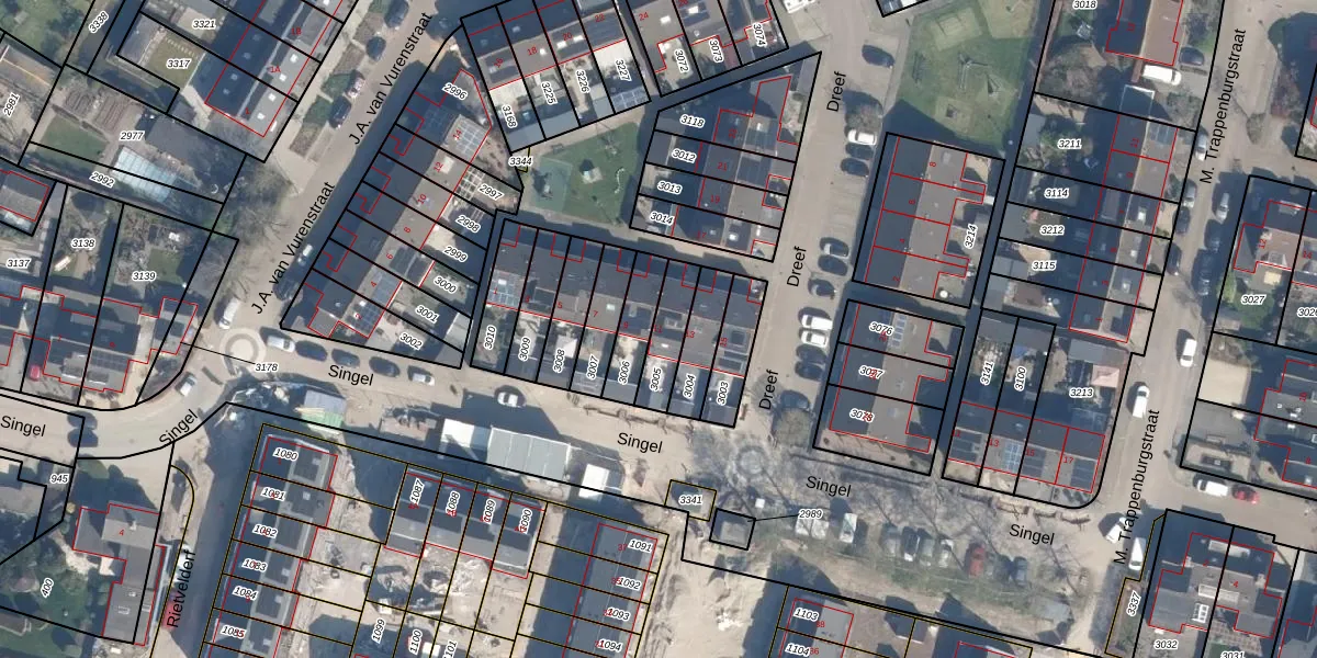 Gebruik de zoekbalk of klik op een perceel voor informatie over de adressen binnen dit perceel.