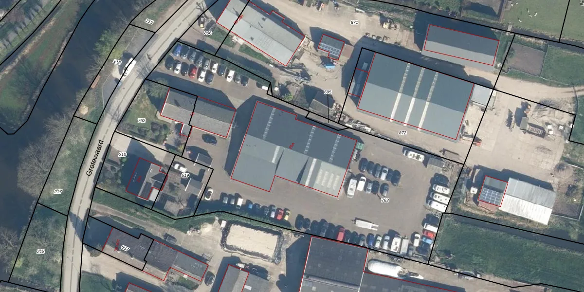 Het perceel waarop Grotewaard 29-A staat heeft een oppervlakte van 3900 m². Dit is een zeer groot perceel. De perceeloppervlakte wordt geregistreerd door het Kadaster. Gedetailleerde informatie over de maten van dit perceel kunt u vinden in het rapport Kadastrale kaart met maatvoering van Grotewaard 29-A.