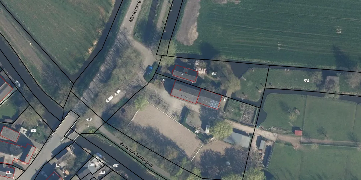 Het perceel waarop Middenweg 9-A staat heeft een oppervlakte van 3100 m². Dit is een zeer groot perceel. De perceeloppervlakte wordt geregistreerd door het Kadaster. Gedetailleerde informatie over de maten van dit perceel kunt u vinden in het rapport Kadastrale kaart met maatvoering van Middenweg 9-A.