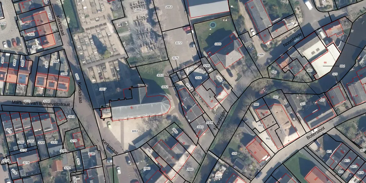 Het adres is gelegen op perceel 3052 in de sectie A en de kadastrale gemeente Noordeloos. De kadastrale aanduiding is aldus NDL00-A-3052. De gemiddelde perceelgrootte in Noordeloos is 9061,86 m². Dit perceel is kleiner: de perceeloppervlakte bedraagt 190 m². Het kleinste perceel in de kadastrale gemeente is 0 m² groot. De grootste perceeloppervlakte is 30,4 ha. Er zijn 3 adressen aanwezig op het perceel. De laatste wijziging in het de Basisregistratie Kadaster (BRK) was op 09-08-2019.