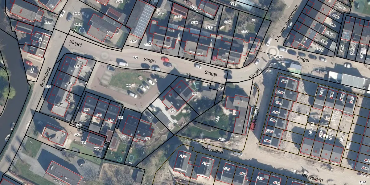 Het perceel waarop Singel 2-G staat heeft een oppervlakte van 305 m². Dit is een groot perceel. De perceeloppervlakte wordt geregistreerd door het Kadaster. Gedetailleerde informatie over de maten van dit perceel kunt u vinden in het rapport Kadastrale kaart met maatvoering van Singel 2-G.