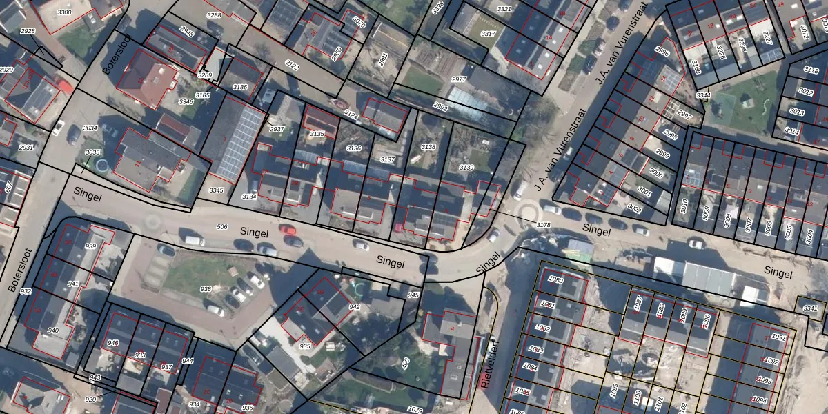 Het perceel waarop Singel 7 staat heeft een oppervlakte van 285 m². Dit is een middelgroot perceel. De perceeloppervlakte wordt geregistreerd door het Kadaster. Gedetailleerde informatie over de maten van dit perceel kunt u vinden in het rapport Kadastrale kaart met maatvoering van Singel 7.