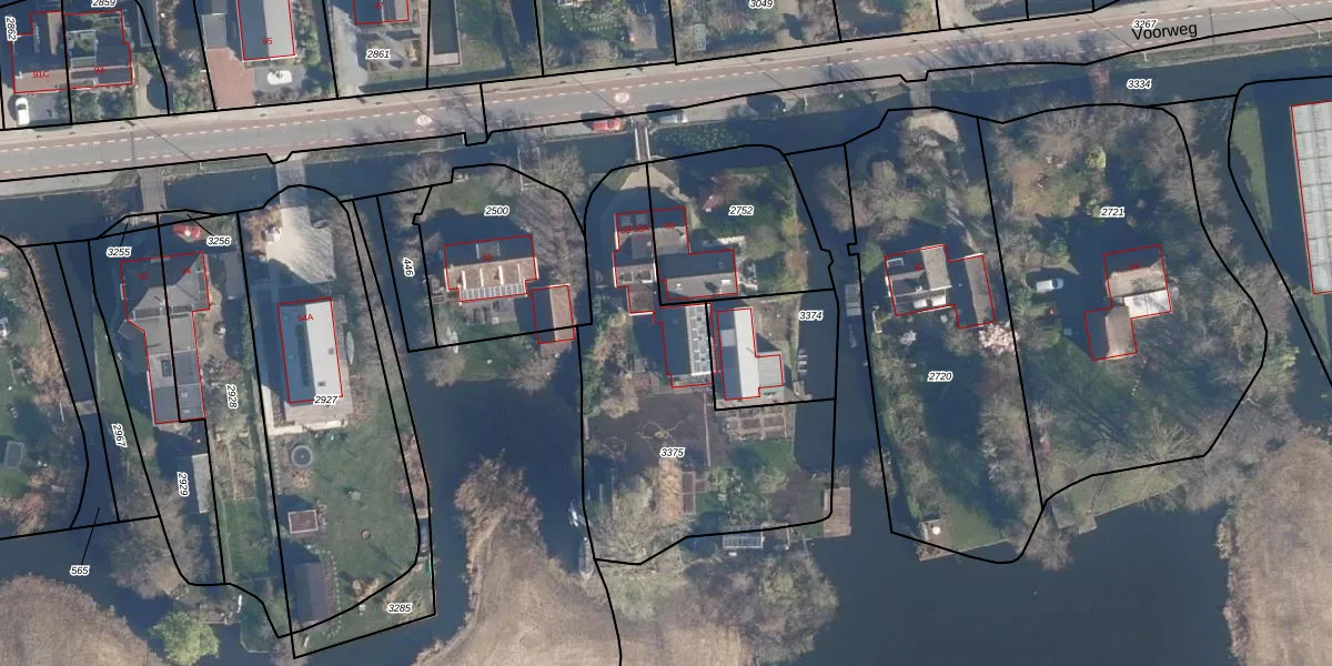 Het perceel waarop Voorweg 58-A staat heeft een oppervlakte van 1387 m². Dit is een zeer groot perceel. De perceeloppervlakte wordt geregistreerd door het Kadaster. Gedetailleerde informatie over de maten van dit perceel kunt u vinden in het rapport Kadastrale kaart met maatvoering van Voorweg 58-A.