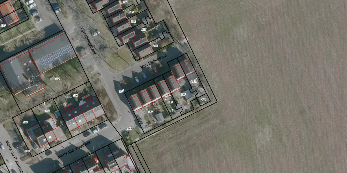 Het perceel waarop Van Eldikstraat 10 staat heeft een oppervlakte van 320 m². Dit is een groot perceel. De perceeloppervlakte wordt geregistreerd door het Kadaster. Gedetailleerde informatie over de maten van dit perceel kunt u vinden in het rapport Kadastrale kaart met maatvoering van Van Eldikstraat 10.