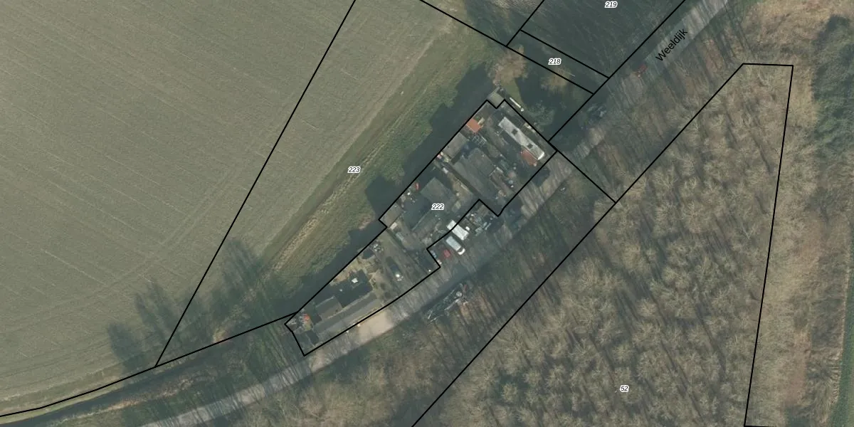 Weeldijk 10 is gelegen op kadastraal perceel SDB02G222. Deze kadastrale aanduiding is uniek en wordt gebruikt door het Kadaster om eigendomsrechten en andere zakelijke rechten vast te leggen. Het perceel maakt onderdeel uit van de kadastrale gemeente Standdaarbuiten.