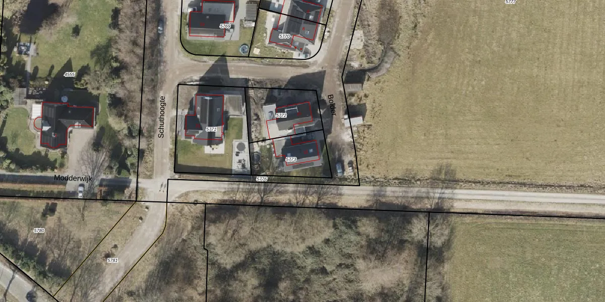 Het perceel waarop Bolder 12 staat heeft een oppervlakte van 344 m². Dit is een groot perceel. De perceeloppervlakte wordt geregistreerd door het Kadaster. Gedetailleerde informatie over de maten van dit perceel kunt u vinden in het rapport Kadastrale kaart met maatvoering van Bolder 12.