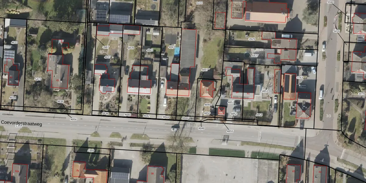Coevorderstraatweg 53 is gelegen op kadastraal perceel HGV00B6103. Deze kadastrale aanduiding is uniek en wordt gebruikt door het Kadaster om eigendomsrechten en andere zakelijke rechten vast te leggen. Het perceel maakt onderdeel uit van de kadastrale gemeente Hoogeveen.