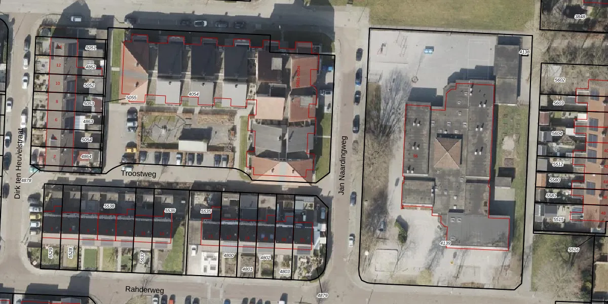 Het perceel waarop Jan Naardingweg 5-003 staat heeft een oppervlakte van 3299 m². Dit is een zeer groot perceel. De perceeloppervlakte wordt geregistreerd door het Kadaster. Gedetailleerde informatie over de maten van dit perceel kunt u vinden in het rapport Kadastrale kaart met maatvoering van Jan Naardingweg 5-003.