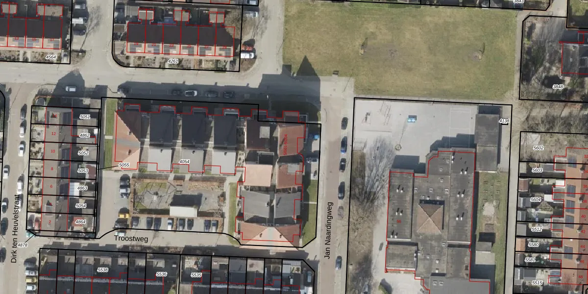Het perceel waarop Jan Naardingweg 5-013 staat heeft een oppervlakte van 3299 m². Dit is een zeer groot perceel. De perceeloppervlakte wordt geregistreerd door het Kadaster. Gedetailleerde informatie over de maten van dit perceel kunt u vinden in het rapport Kadastrale kaart met maatvoering van Jan Naardingweg 5-013.