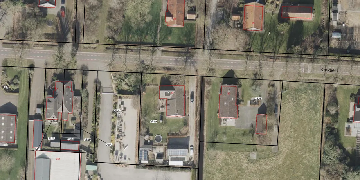 Het perceel waarop Krakeel 28 staat heeft een oppervlakte van 1730 m². Dit is een zeer groot perceel. De perceeloppervlakte wordt geregistreerd door het Kadaster. Gedetailleerde informatie over de maten van dit perceel kunt u vinden in het rapport Kadastrale kaart met maatvoering van Krakeel 28.