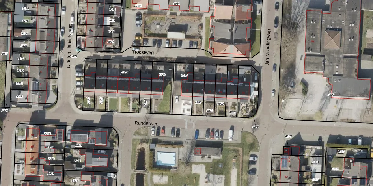 Rahderweg 15 is gelegen op kadastraal perceel HGV00K5535. Deze kadastrale aanduiding is uniek en wordt gebruikt door het Kadaster om eigendomsrechten en andere zakelijke rechten vast te leggen. Het perceel maakt onderdeel uit van de kadastrale gemeente Hoogeveen.