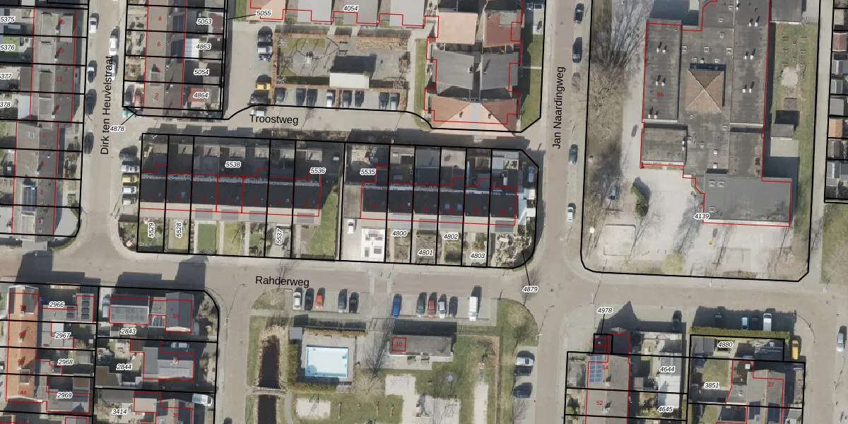 Rahderweg 19 is gelegen op kadastraal perceel HGV00K4801. Deze kadastrale aanduiding is uniek en wordt gebruikt door het Kadaster om eigendomsrechten en andere zakelijke rechten vast te leggen. Het perceel maakt onderdeel uit van de kadastrale gemeente Hoogeveen.