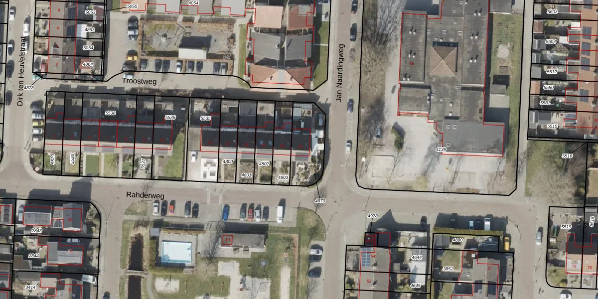 Het perceel waarop Rahderweg 25 staat heeft een oppervlakte van 280 m². Dit is een middelgroot perceel. De perceeloppervlakte wordt geregistreerd door het Kadaster. Gedetailleerde informatie over de maten van dit perceel kunt u vinden in het rapport Kadastrale kaart met maatvoering van Rahderweg 25.