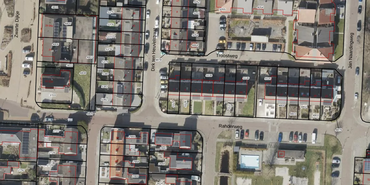 Rahderweg 3 is gelegen op kadastraal perceel HGV00K5528. Deze kadastrale aanduiding is uniek en wordt gebruikt door het Kadaster om eigendomsrechten en andere zakelijke rechten vast te leggen. Het perceel maakt onderdeel uit van de kadastrale gemeente Hoogeveen.