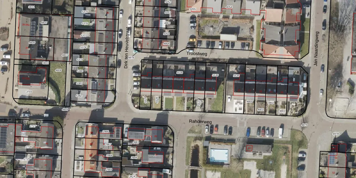 Het perceel waarop Rahderweg 7 staat heeft een oppervlakte van 505 m². Dit is een groot perceel. De perceeloppervlakte wordt geregistreerd door het Kadaster. Gedetailleerde informatie over de maten van dit perceel kunt u vinden in het rapport Kadastrale kaart met maatvoering van Rahderweg 7.