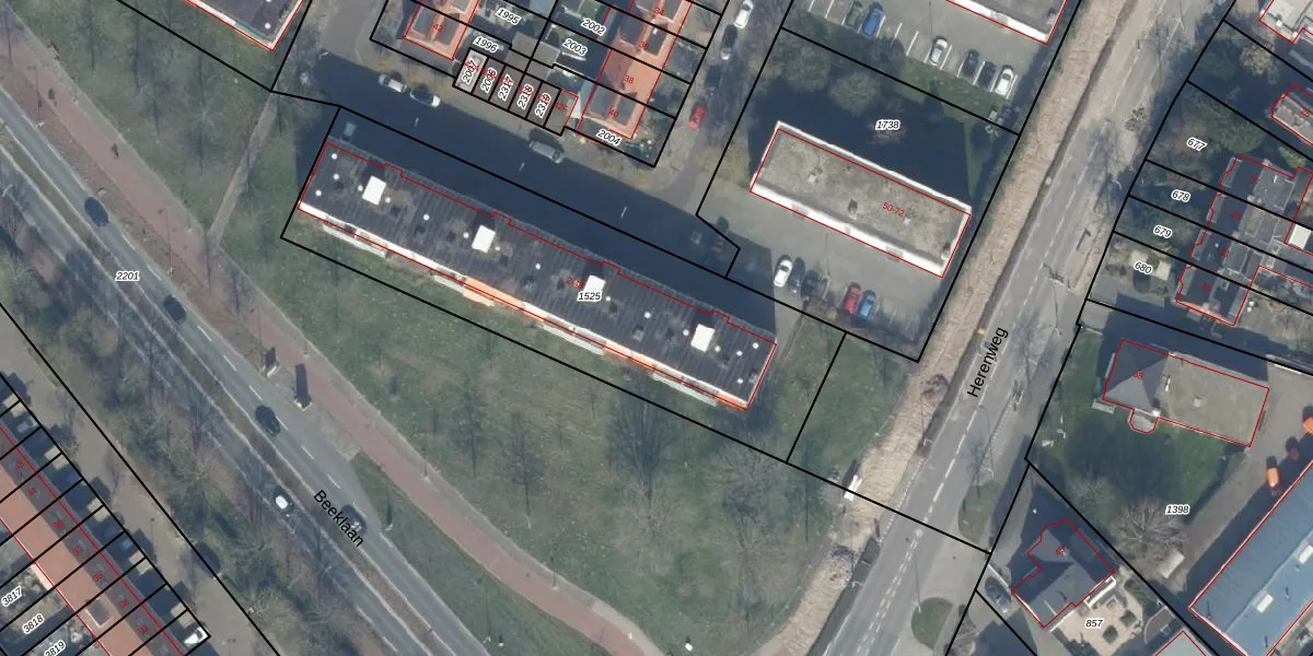 Het perceel waarop Beeklaan 14 staat heeft een oppervlakte van 1855 m². Dit is een zeer groot perceel. De perceeloppervlakte wordt geregistreerd door het Kadaster. Gedetailleerde informatie over de maten van dit perceel kunt u vinden in het rapport Kadastrale kaart met maatvoering van Beeklaan 14.