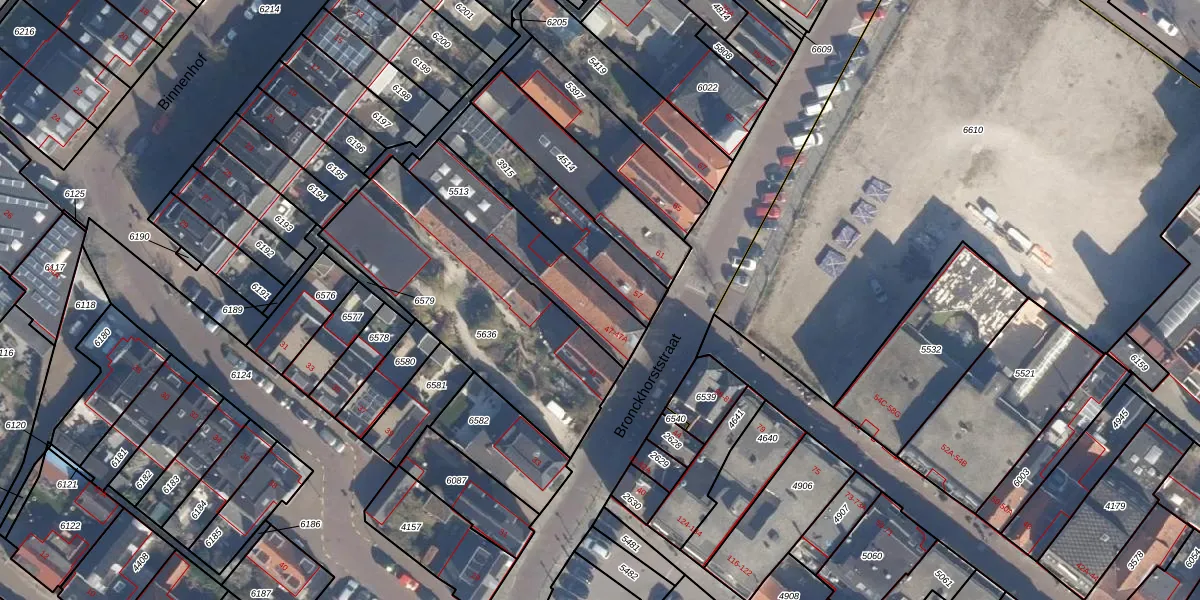 Het perceel waarop Bronckhorststraat 47-C staat heeft een oppervlakte van 354 m². Dit is een groot perceel. De perceeloppervlakte wordt geregistreerd door het Kadaster. Gedetailleerde informatie over de maten van dit perceel kunt u vinden in het rapport Kadastrale kaart met maatvoering van Bronckhorststraat 47-C.