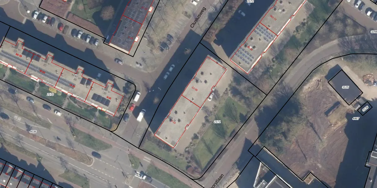 Het perceel waarop Clusiusweg 2-M staat heeft een oppervlakte van 2565 m². Dit is een zeer groot perceel. De perceeloppervlakte wordt geregistreerd door het Kadaster. Gedetailleerde informatie over de maten van dit perceel kunt u vinden in het rapport Kadastrale kaart met maatvoering van Clusiusweg 2-M.