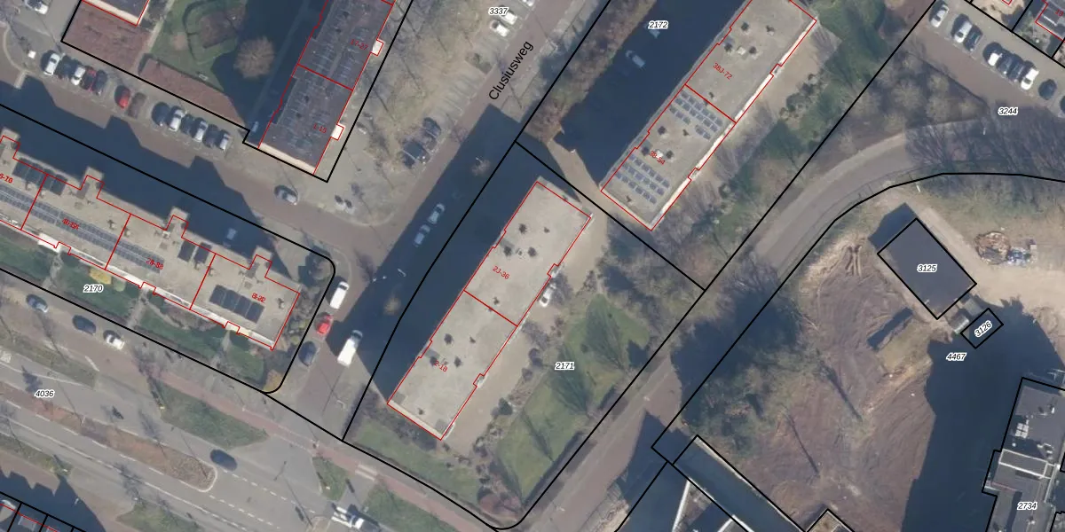 Het perceel waarop Clusiusweg 34 staat heeft een oppervlakte van 2565 m². Dit is een zeer groot perceel. De perceeloppervlakte wordt geregistreerd door het Kadaster. Gedetailleerde informatie over de maten van dit perceel kunt u vinden in het rapport Kadastrale kaart met maatvoering van Clusiusweg 34.