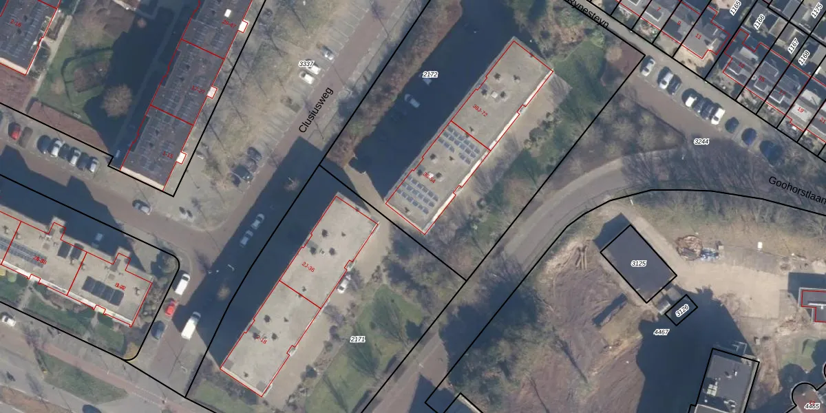 Het perceel waarop Clusiusweg 38-D staat heeft een oppervlakte van 3270 m². Dit is een zeer groot perceel. De perceeloppervlakte wordt geregistreerd door het Kadaster. Gedetailleerde informatie over de maten van dit perceel kunt u vinden in het rapport Kadastrale kaart met maatvoering van Clusiusweg 38-D.