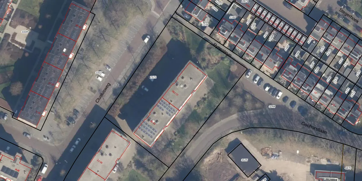 Het perceel waarop Clusiusweg 72 staat heeft een oppervlakte van 3270 m². Dit is een zeer groot perceel. De perceeloppervlakte wordt geregistreerd door het Kadaster. Gedetailleerde informatie over de maten van dit perceel kunt u vinden in het rapport Kadastrale kaart met maatvoering van Clusiusweg 72.