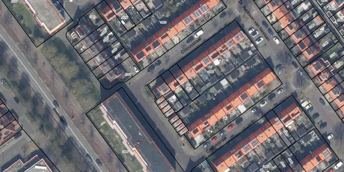 Het perceel waarop Crocusstraat 24 staat heeft een oppervlakte van 2540 m². Dit is een zeer groot perceel. De perceeloppervlakte wordt geregistreerd door het Kadaster. Gedetailleerde informatie over de maten van dit perceel kunt u vinden in het rapport Kadastrale kaart met maatvoering van Crocusstraat 24.