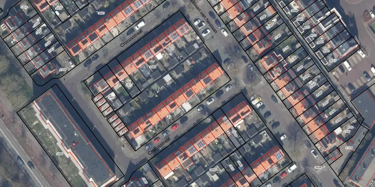 Het perceel waarop Crocusstraat 8 staat heeft een oppervlakte van 2540 m². Dit is een zeer groot perceel. De perceeloppervlakte wordt geregistreerd door het Kadaster. Gedetailleerde informatie over de maten van dit perceel kunt u vinden in het rapport Kadastrale kaart met maatvoering van Crocusstraat 8.