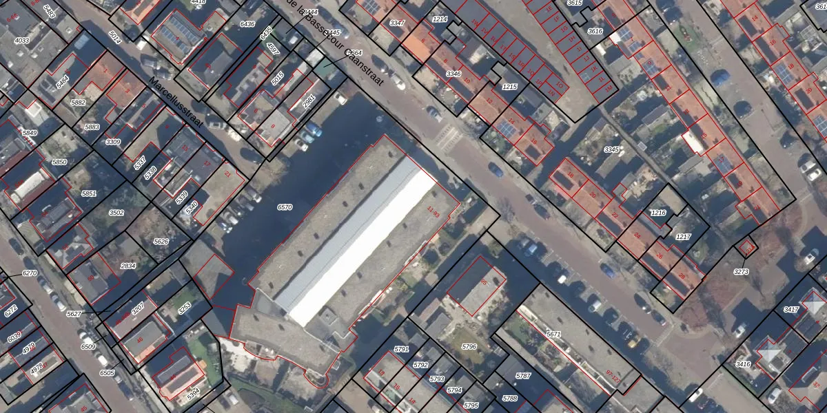 Het perceel waarop de la Bassecour Caanstraat 39 staat heeft een oppervlakte van 3623 m². Dit is een zeer groot perceel. De perceeloppervlakte wordt geregistreerd door het Kadaster. Gedetailleerde informatie over de maten van dit perceel kunt u vinden in het rapport Kadastrale kaart met maatvoering van de la Bassecour Caanstraat 39.