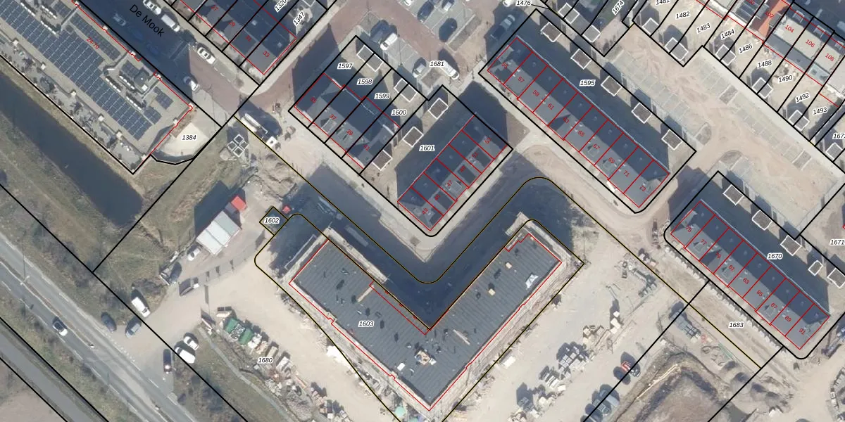 Het perceel waarop De Mook 43 staat heeft een oppervlakte van 662 m². Dit is een groot perceel. De perceeloppervlakte wordt geregistreerd door het Kadaster. Gedetailleerde informatie over de maten van dit perceel kunt u vinden in het rapport Kadastrale kaart met maatvoering van De Mook 43.