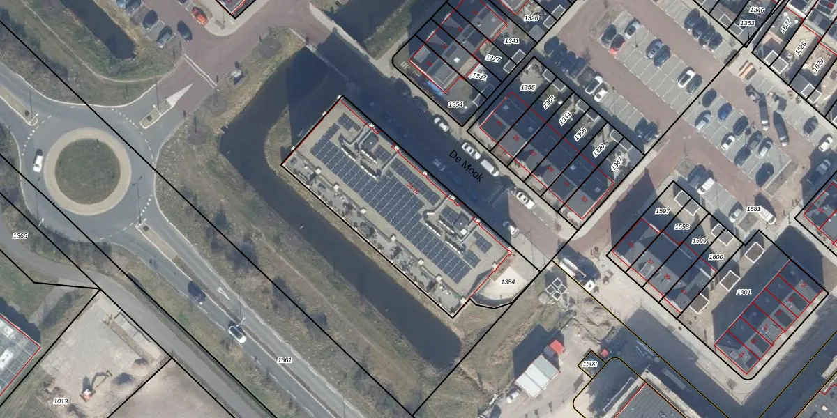 Het perceel waarop De Mook 48 staat heeft een oppervlakte van 1345 m². Dit is een zeer groot perceel. De perceeloppervlakte wordt geregistreerd door het Kadaster. Gedetailleerde informatie over de maten van dit perceel kunt u vinden in het rapport Kadastrale kaart met maatvoering van De Mook 48.