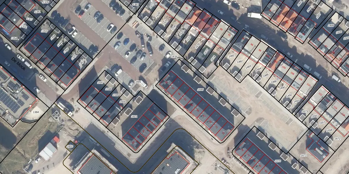 Het perceel waarop De Mook 57 staat heeft een oppervlakte van 1040 m². Dit is een zeer groot perceel. De perceeloppervlakte wordt geregistreerd door het Kadaster. Gedetailleerde informatie over de maten van dit perceel kunt u vinden in het rapport Kadastrale kaart met maatvoering van De Mook 57.