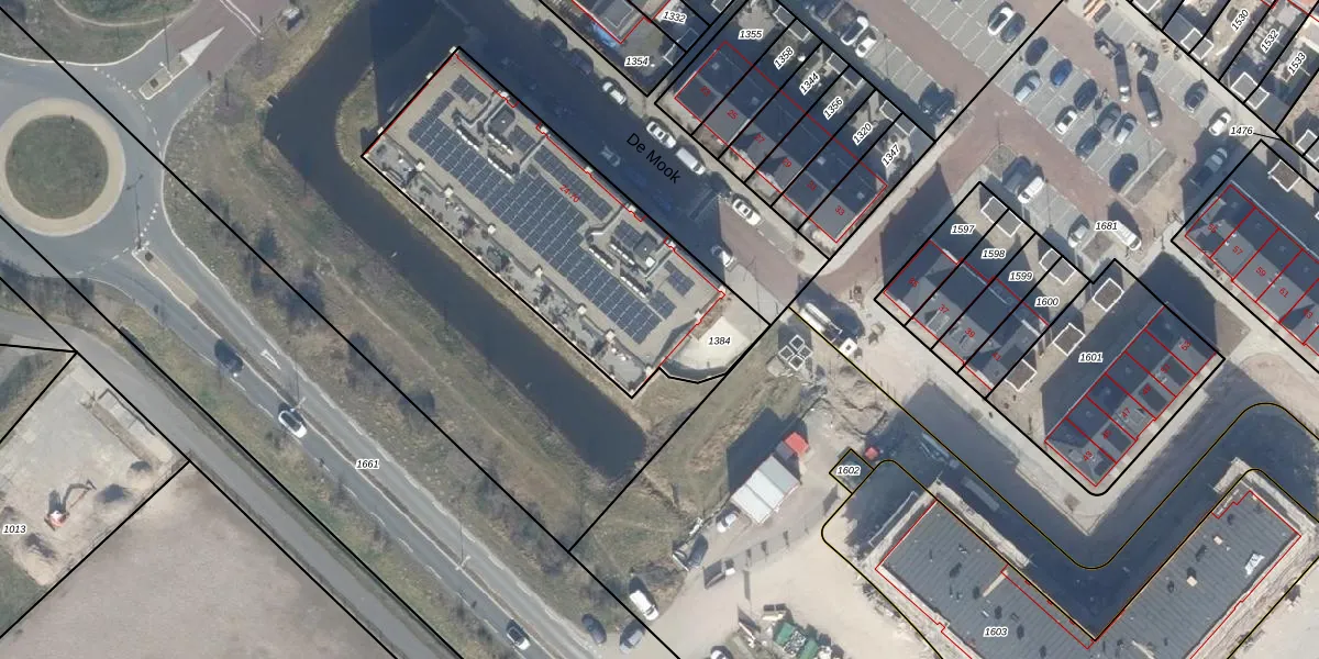 Het perceel waarop De Mook 58 staat heeft een oppervlakte van 1345 m². Dit is een zeer groot perceel. De perceeloppervlakte wordt geregistreerd door het Kadaster. Gedetailleerde informatie over de maten van dit perceel kunt u vinden in het rapport Kadastrale kaart met maatvoering van De Mook 58.