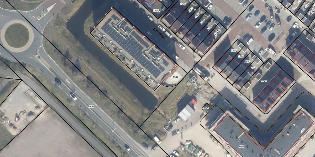 Het perceel waarop De Mook 64 staat heeft een oppervlakte van 1345 m². Dit is een zeer groot perceel. De perceeloppervlakte wordt geregistreerd door het Kadaster. Gedetailleerde informatie over de maten van dit perceel kunt u vinden in het rapport Kadastrale kaart met maatvoering van De Mook 64.