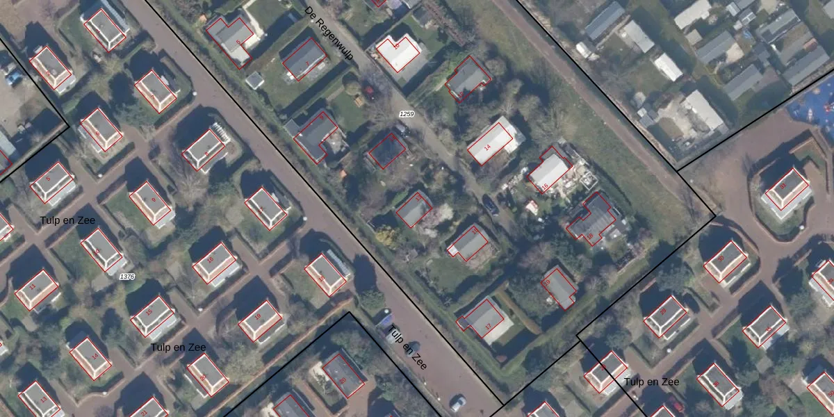 Het perceel waarop De Regenwulp 13 staat heeft een oppervlakte van 9550 m². Dit is een zeer groot perceel. De perceeloppervlakte wordt geregistreerd door het Kadaster. Gedetailleerde informatie over de maten van dit perceel kunt u vinden in het rapport Kadastrale kaart met maatvoering van De Regenwulp 13.