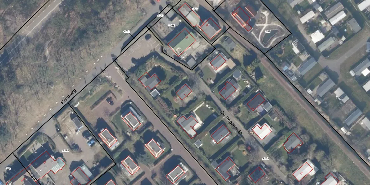 Het perceel waarop De Regenwulp 3 staat heeft een oppervlakte van 9550 m². Dit is een zeer groot perceel. De perceeloppervlakte wordt geregistreerd door het Kadaster. Gedetailleerde informatie over de maten van dit perceel kunt u vinden in het rapport Kadastrale kaart met maatvoering van De Regenwulp 3.