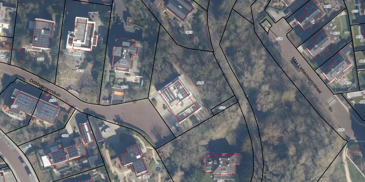 Dobbelmannduin 10 is gelegen op kadastraal perceel NWK02A4245. Deze kadastrale aanduiding is uniek en wordt gebruikt door het Kadaster om eigendomsrechten en andere zakelijke rechten vast te leggen. Het perceel maakt onderdeel uit van de kadastrale gemeente Noordwijk.