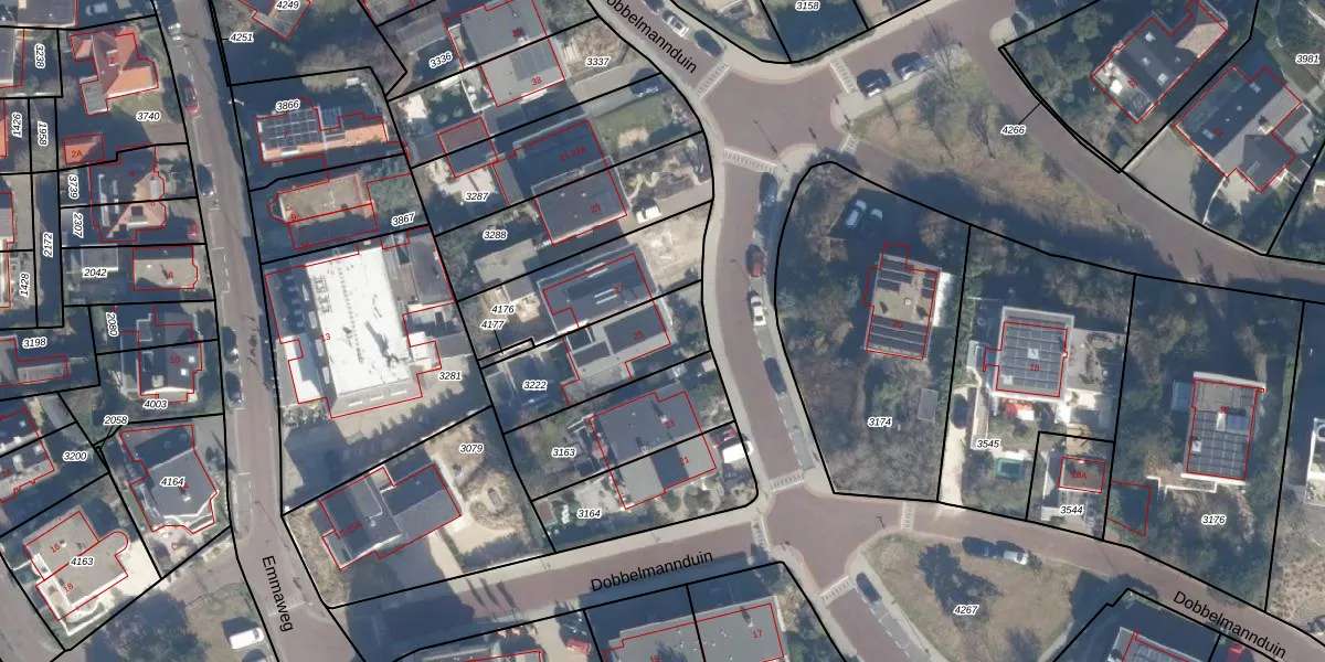 Het perceel waarop Dobbelmannduin 25 staat heeft een oppervlakte van 369 m². Dit is een groot perceel. De perceeloppervlakte wordt geregistreerd door het Kadaster. Gedetailleerde informatie over de maten van dit perceel kunt u vinden in het rapport Kadastrale kaart met maatvoering van Dobbelmannduin 25.