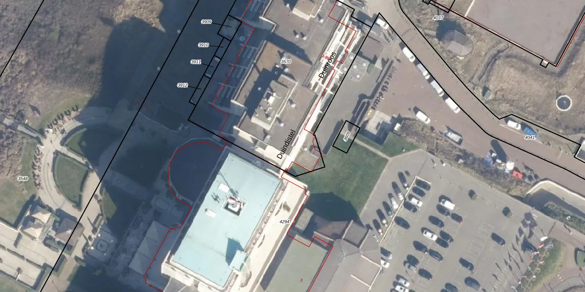 Het perceel waarop Duindistel 22 staat heeft een oppervlakte van 2612 m². Dit is een zeer groot perceel. De perceeloppervlakte wordt geregistreerd door het Kadaster. Gedetailleerde informatie over de maten van dit perceel kunt u vinden in het rapport Kadastrale kaart met maatvoering van Duindistel 22.