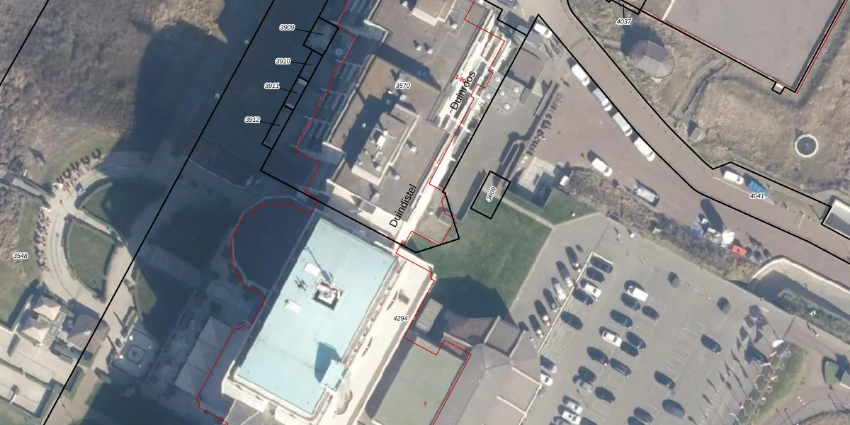 Het perceel waarop Duindistel 65 staat heeft een oppervlakte van 2612 m². Dit is een zeer groot perceel. De perceeloppervlakte wordt geregistreerd door het Kadaster. Gedetailleerde informatie over de maten van dit perceel kunt u vinden in het rapport Kadastrale kaart met maatvoering van Duindistel 65.