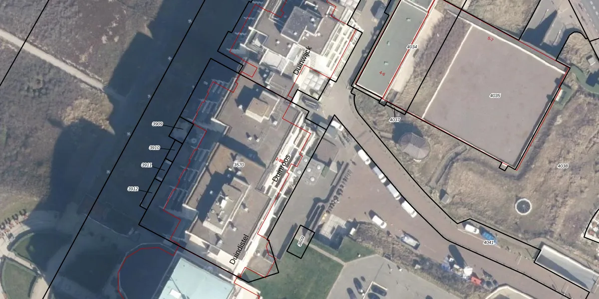 Het perceel waarop Duinroos 41 staat heeft een oppervlakte van 2612 m². Dit is een zeer groot perceel. De perceeloppervlakte wordt geregistreerd door het Kadaster. Gedetailleerde informatie over de maten van dit perceel kunt u vinden in het rapport Kadastrale kaart met maatvoering van Duinroos 41.