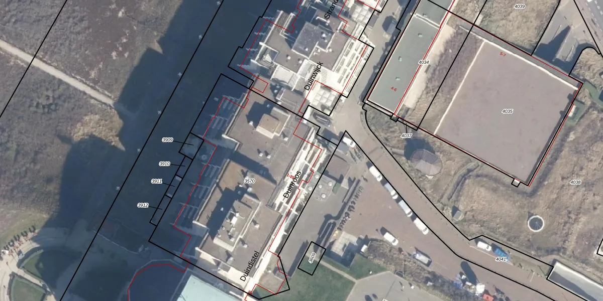 Het perceel waarop Duinroos 53 staat heeft een oppervlakte van 2612 m². Dit is een zeer groot perceel. De perceeloppervlakte wordt geregistreerd door het Kadaster. Gedetailleerde informatie over de maten van dit perceel kunt u vinden in het rapport Kadastrale kaart met maatvoering van Duinroos 53.