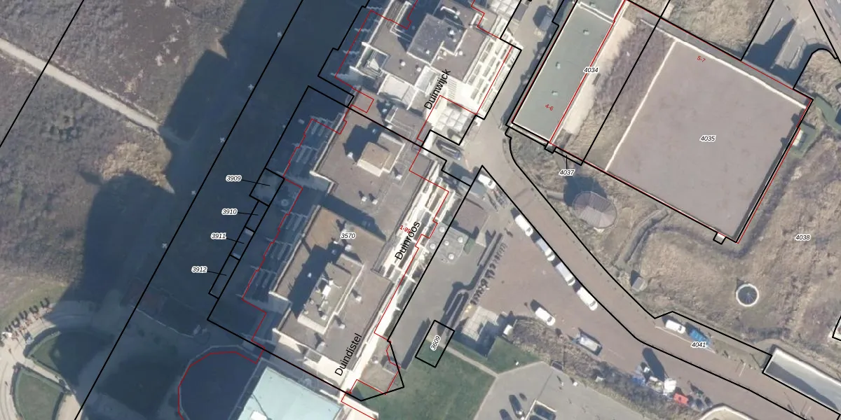 Het perceel waarop Duinroos 55 staat heeft een oppervlakte van 2612 m². Dit is een zeer groot perceel. De perceeloppervlakte wordt geregistreerd door het Kadaster. Gedetailleerde informatie over de maten van dit perceel kunt u vinden in het rapport Kadastrale kaart met maatvoering van Duinroos 55.