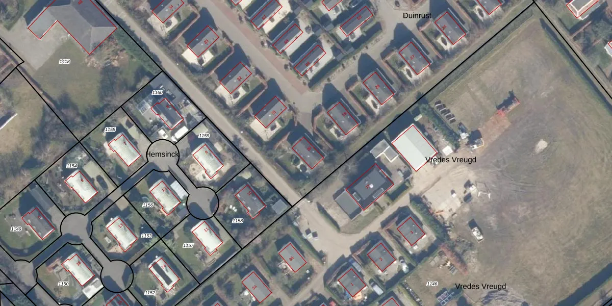 Het perceel waarop Duinrust 30 staat heeft een oppervlakte van 1,3 ha. Dit is een zeer groot perceel. De perceeloppervlakte wordt geregistreerd door het Kadaster. Gedetailleerde informatie over de maten van dit perceel kunt u vinden in het rapport Kadastrale kaart met maatvoering van Duinrust 30.