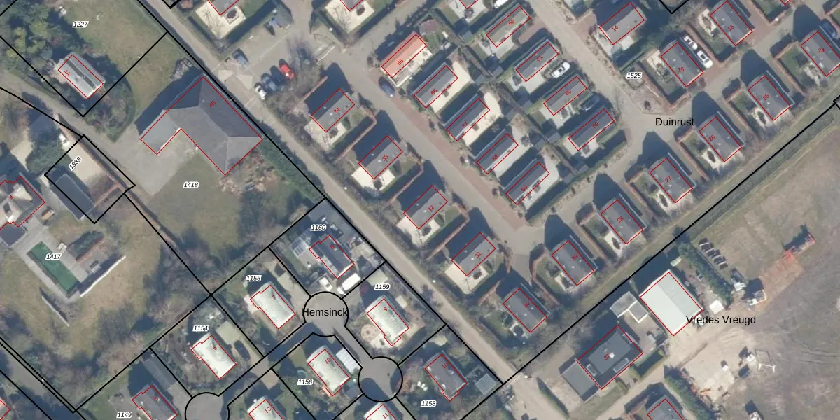 Het perceel waarop Duinrust 32 staat heeft een oppervlakte van 1,3 ha. Dit is een zeer groot perceel. De perceeloppervlakte wordt geregistreerd door het Kadaster. Gedetailleerde informatie over de maten van dit perceel kunt u vinden in het rapport Kadastrale kaart met maatvoering van Duinrust 32.