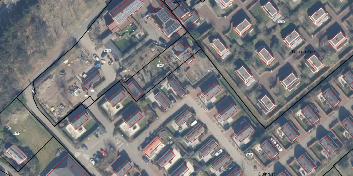 Het perceel waarop Duinrust 54 staat heeft een oppervlakte van 1,3 ha. Dit is een zeer groot perceel. De perceeloppervlakte wordt geregistreerd door het Kadaster. Gedetailleerde informatie over de maten van dit perceel kunt u vinden in het rapport Kadastrale kaart met maatvoering van Duinrust 54.