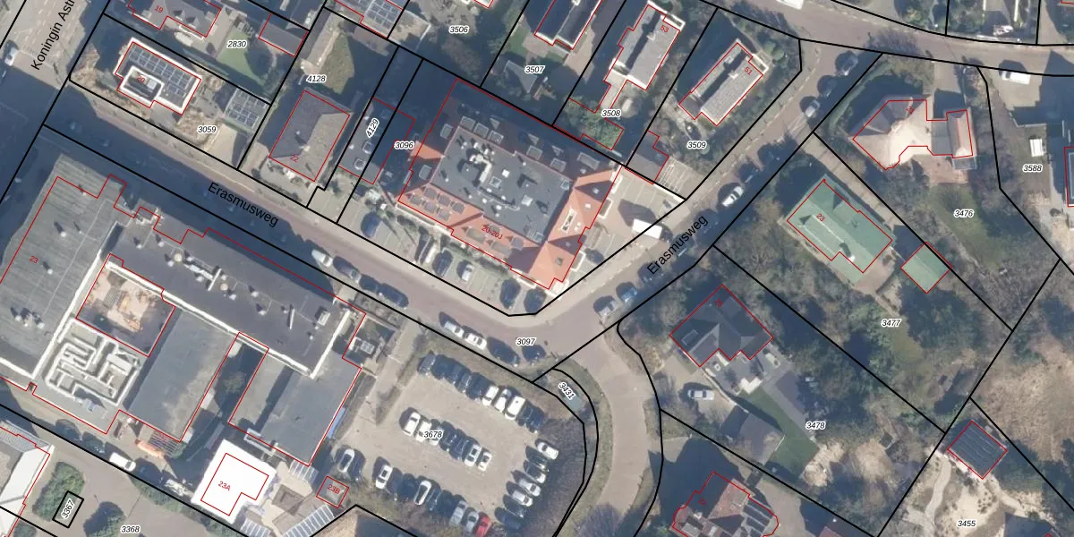 Erasmusweg 20-A is gelegen op kadastraal perceel NWK02A3096. Deze kadastrale aanduiding is uniek en wordt gebruikt door het Kadaster om eigendomsrechten en andere zakelijke rechten vast te leggen. Het perceel maakt onderdeel uit van de kadastrale gemeente Noordwijk.