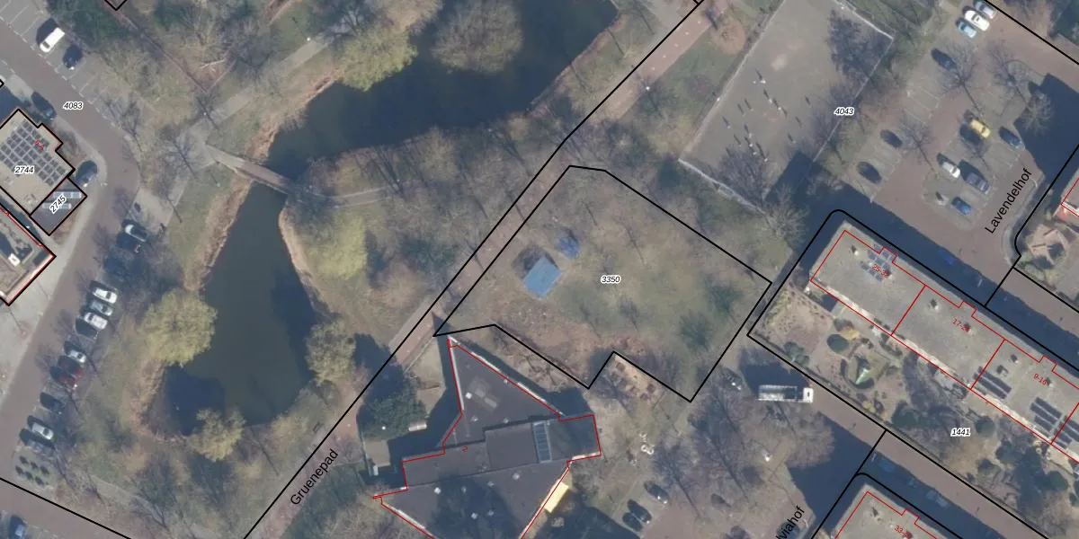 Gruenepad 2-A is gelegen op kadastraal perceel NWK02M3350. Deze kadastrale aanduiding is uniek en wordt gebruikt door het Kadaster om eigendomsrechten en andere zakelijke rechten vast te leggen. Het perceel maakt onderdeel uit van de kadastrale gemeente Noordwijk.